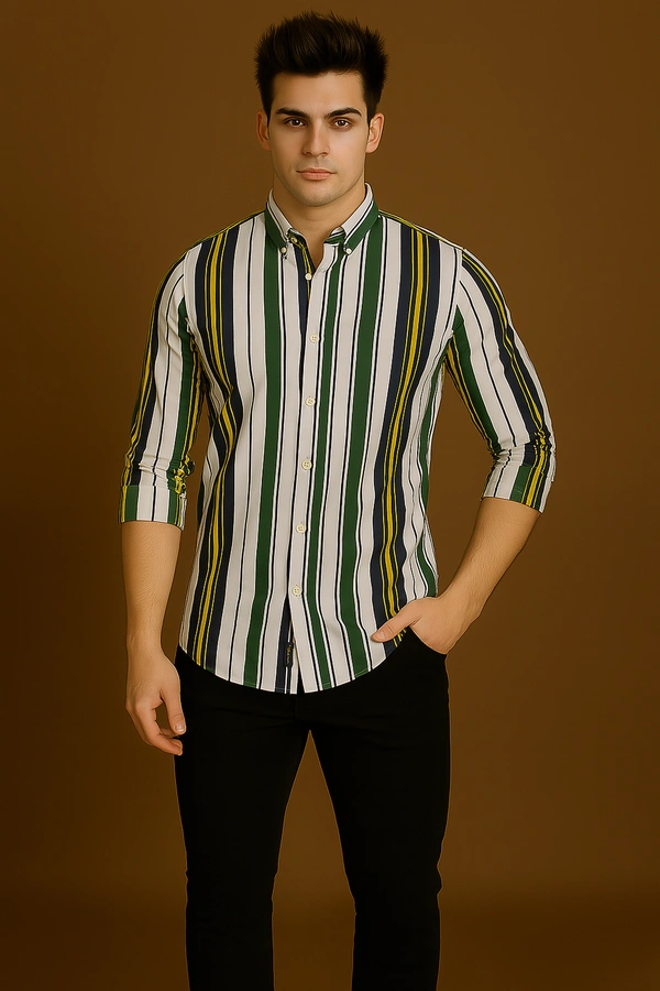 Elevate your wardrobe with the AMERICAN OWL Casual Full Sleeves Striped Shirt, the ultimate choice for individuals who value sophistication, unparalleled comfort, and premium quality. Expertly crafted from imported Lycra fabric, this shirt embodies timeless elegance and modern versatility, ensuring you look your best at every occasion. Whether you're dressing up for a semi-formal event or keeping it casual, this shirt is designed to deliver style and satisfaction to discerning customers seeking top-tier fashion.