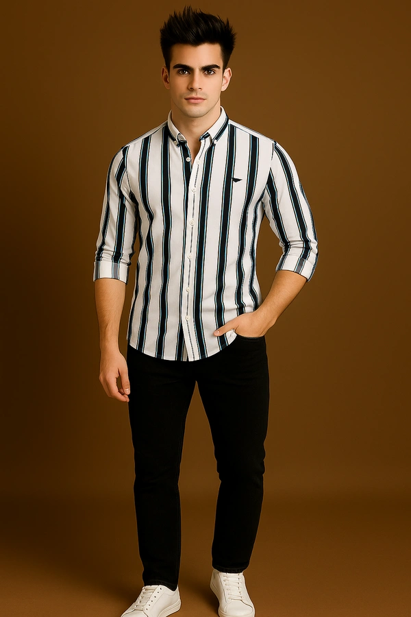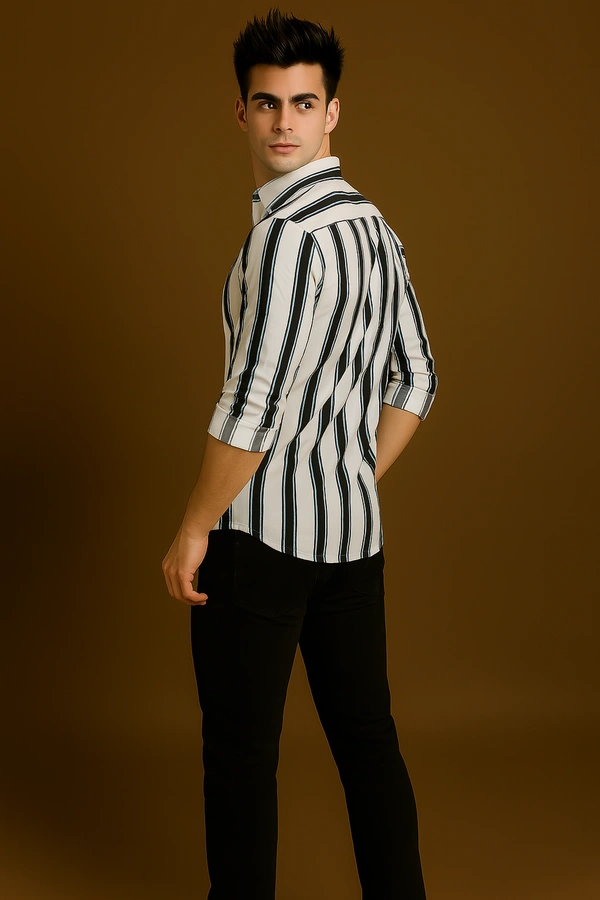 • Elegant Striped Design: Featuring a timeless striped pattern, this full-sleeve shirt seamlessly blends casual charm with semi-formal elegance, making it a standout piece in any wardrobe.